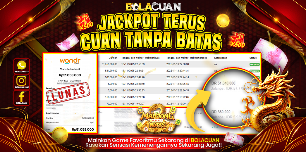 Untuk meningkatkan kepuasan para pemain, BOLACUAN menawarkan berbagai bonus dan promo menarik setiap harinya. Mulai dari bonus new member, cashback mingguan, hingga event jackpot progresif yang bisa memberikan hadiah fantastis.